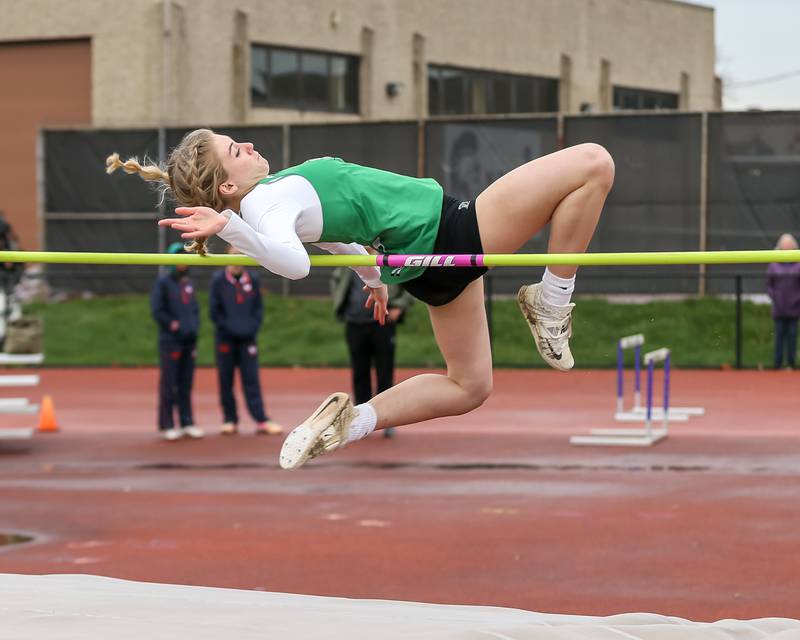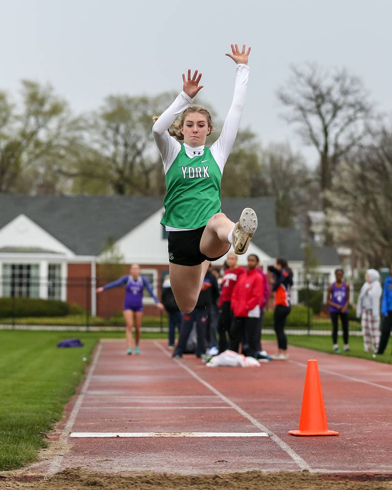 Girls Track and Field, West Suburban Silver conference meet York's Ava Glabus competes in the high jump during the West Suburban Silver conference meet at Downers Grove North. May 6.2022. (Gary E Duncan Sr)