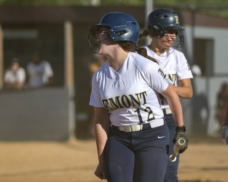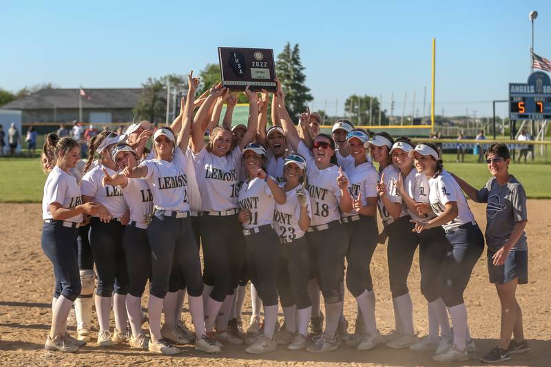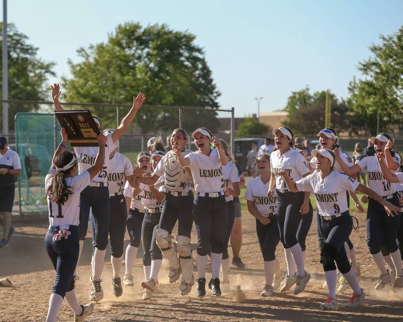 Class 3A Joliet Catholic Sectional final game between Marian Catholic at Lemont Lemont's Ava Reed (12) is excited during Class 3A Joliet Catholic Sectional final game between Marian Catholic at Lemont. June 3, 2022. (Gary E Duncan Sr for Shaw Local)