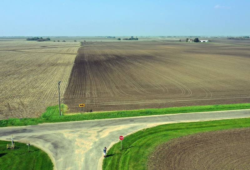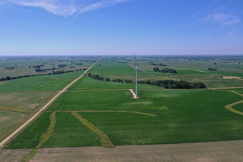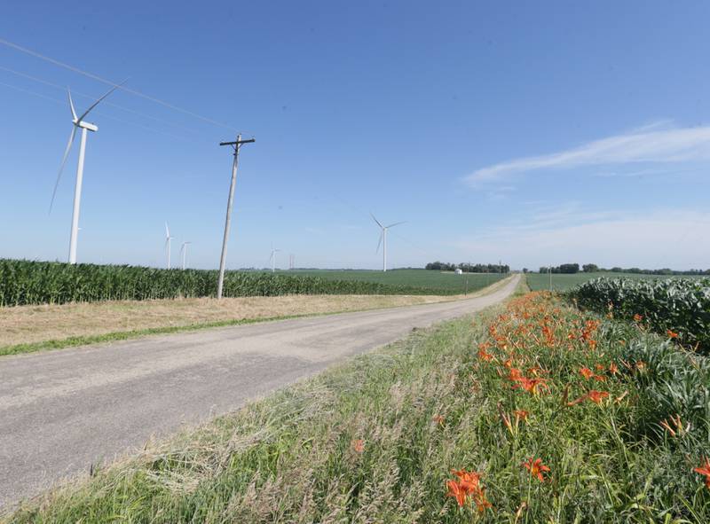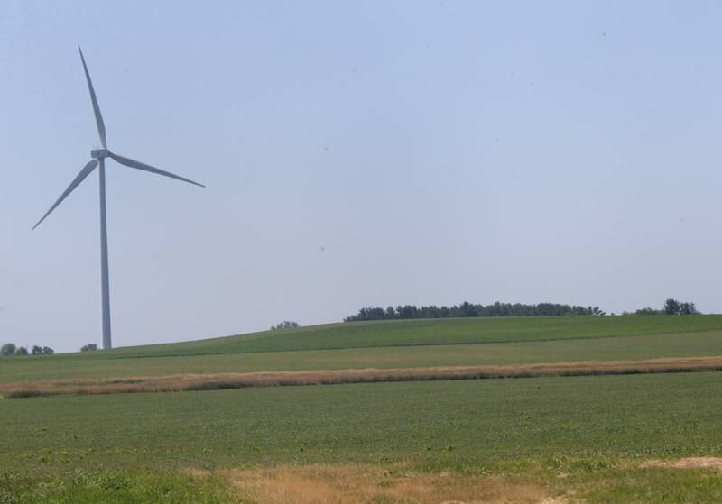 The ridge next to the wind turbine is La Salle County's highest natural point at 920 feet above sea level, located in Mendota Township. The high point, photographed Thursday, June 30, 2022, can be spotted on the west side of the road about half way between North 47th and 48th Roads along East Fourth Road. (Scott Anderson)