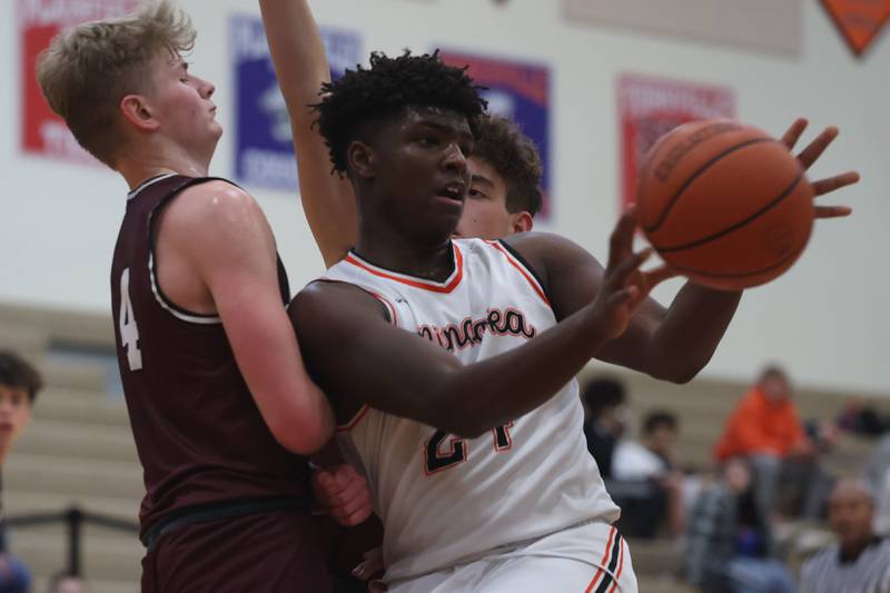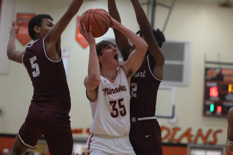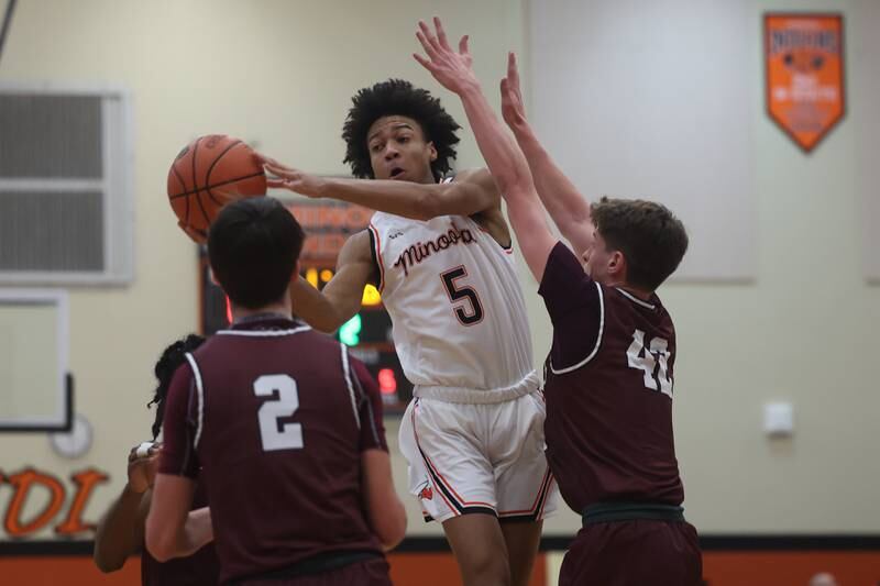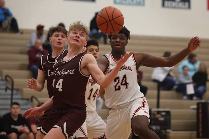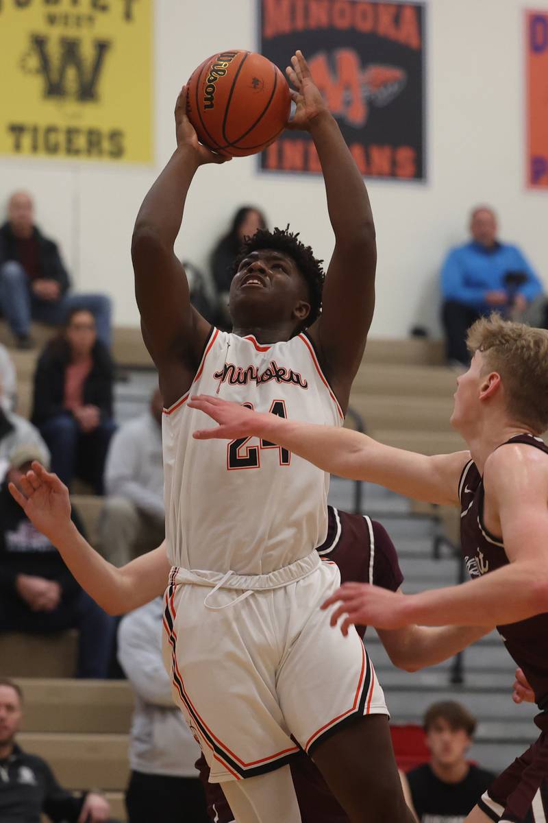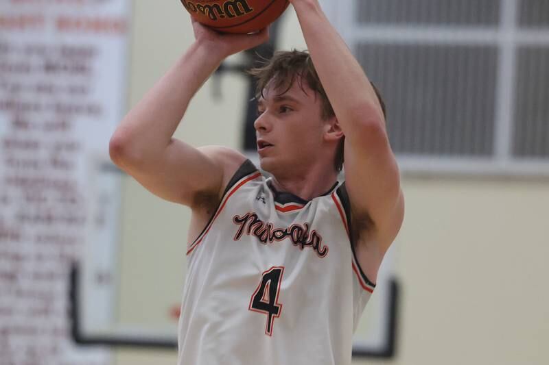 Lockport’s Adam Labude puts up the three point shot against Minooka. (Gary Middendorf – gmiddendorf@shawmedia/Gary Middendorf)