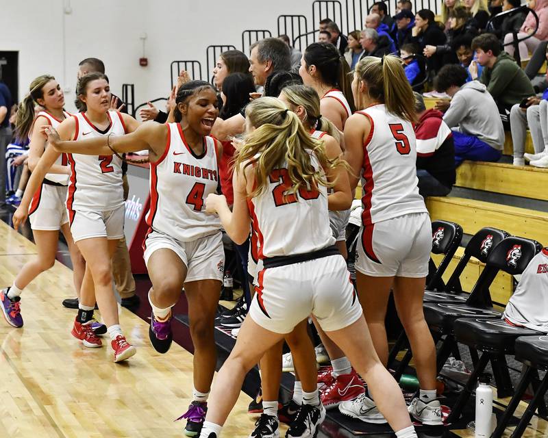 Lincoln Way Central's teammates celebrate as the final seconds tick during the 4A Lincoln-Way Central Regional Championship game on Thursday, Feb. 16, 2023, at New Lenox. (Dean Reid for Shaw Local News Network/Dean Reid)