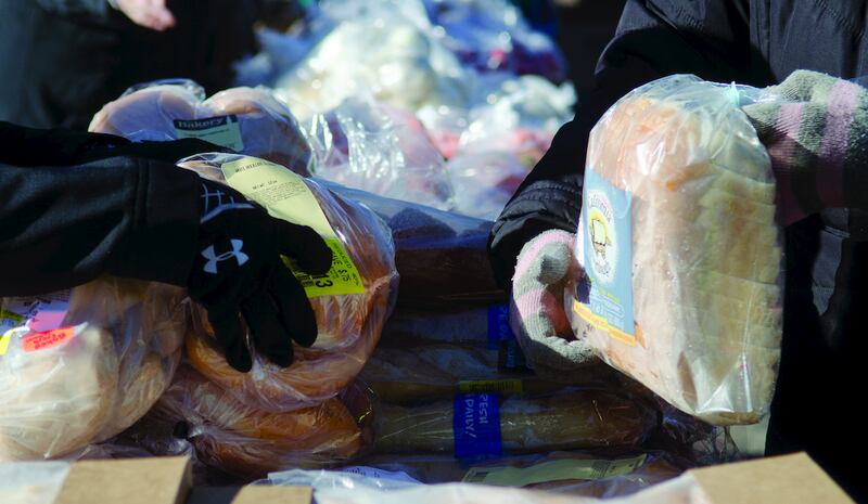 Distribution will be indoors. The distribution process can take up to two hours. Laundry baskets are recommended for the mobile food pantry.