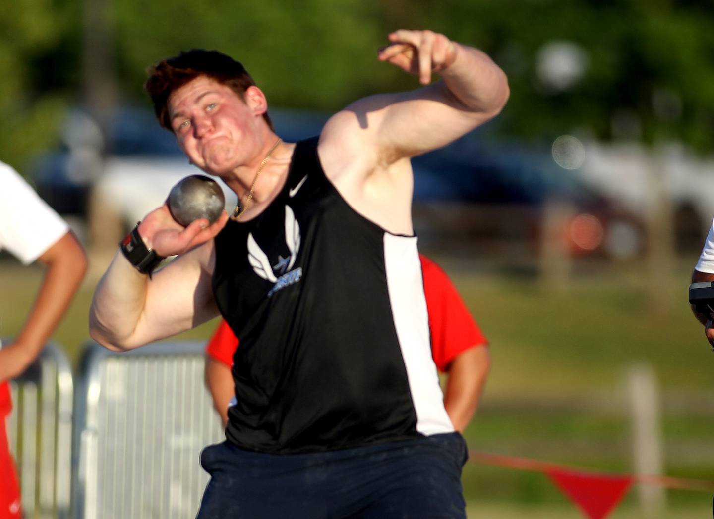 St. Charles North will send Max Galvan to state in triple jump. Paolo Gennarelli won discus (50.84 meters), followed by Marmion’s Dan Coxworth (47.28 meters). Gennarelli also won shot put (16.15 meters).
