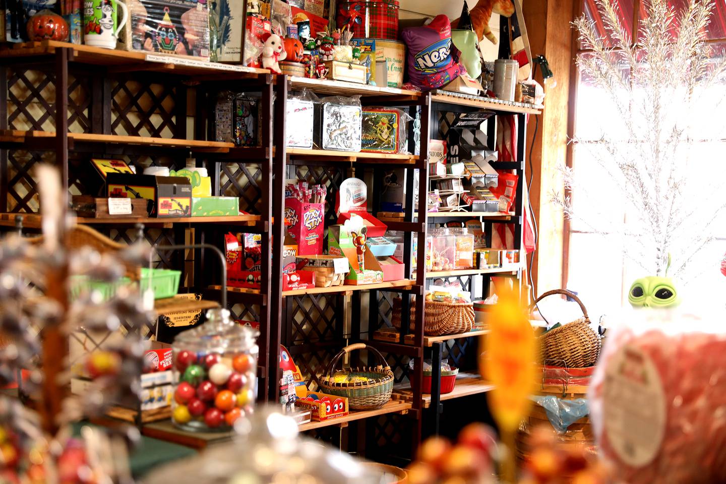 All candy in the store is 50% off. Right next to the Warehouse Confectionery is Warehouse Antiques, which Mari Wittum’s parents, Peggy and Jim Spear, opened in 1972.