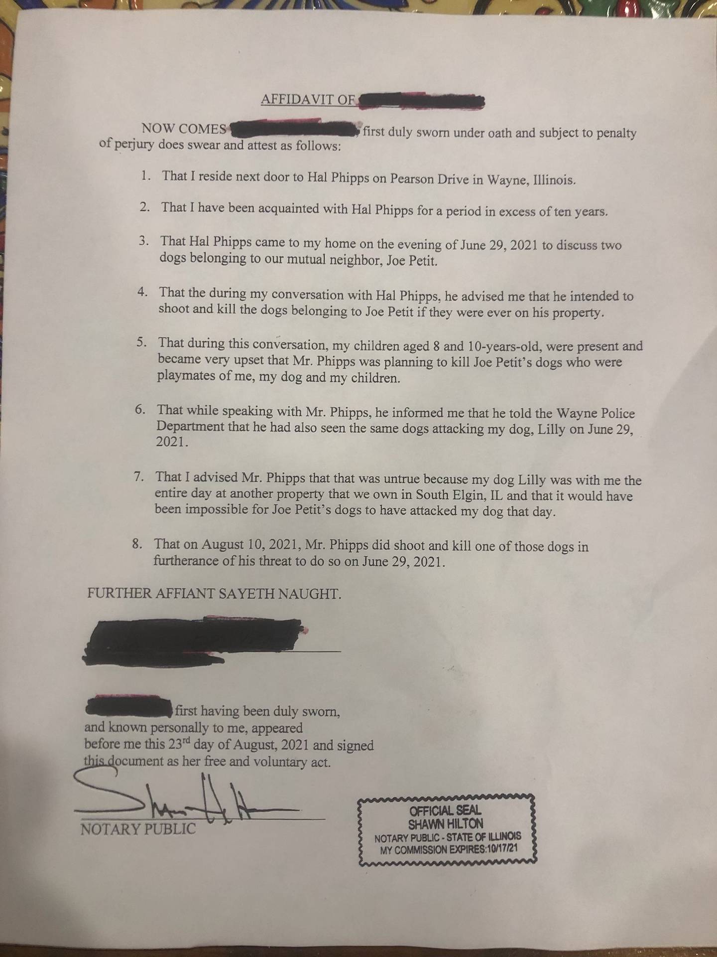 Petit said the affidavit was given to the Kane County State’s Attorney.