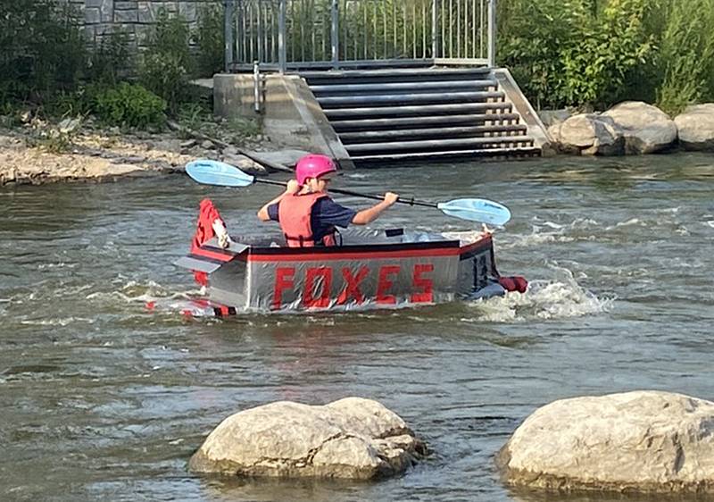 Cardboard canoe race coordinator Stephanie Roskopf, along with the United City of Yorkville, would like to thank the participants in this year’s race held during Yorkville’s River Fest. Mackenzie Conley in the Red Rocket was fastest down the rapids followed closely by Robert Mueller, captain of Foxes, and Eric Emmert on (Wilson). Making it down the rapids amid viewers’ oohs and aahs were Pure Black with Mason Smith in the captain’s seat, Adam Mokelke capturing the moments in the Camera, Daniel Mokelke navigating the Sleigh to Santa’s nice list, and can’t forget J.T. cleaning up the mess in Alta’s Forklift.