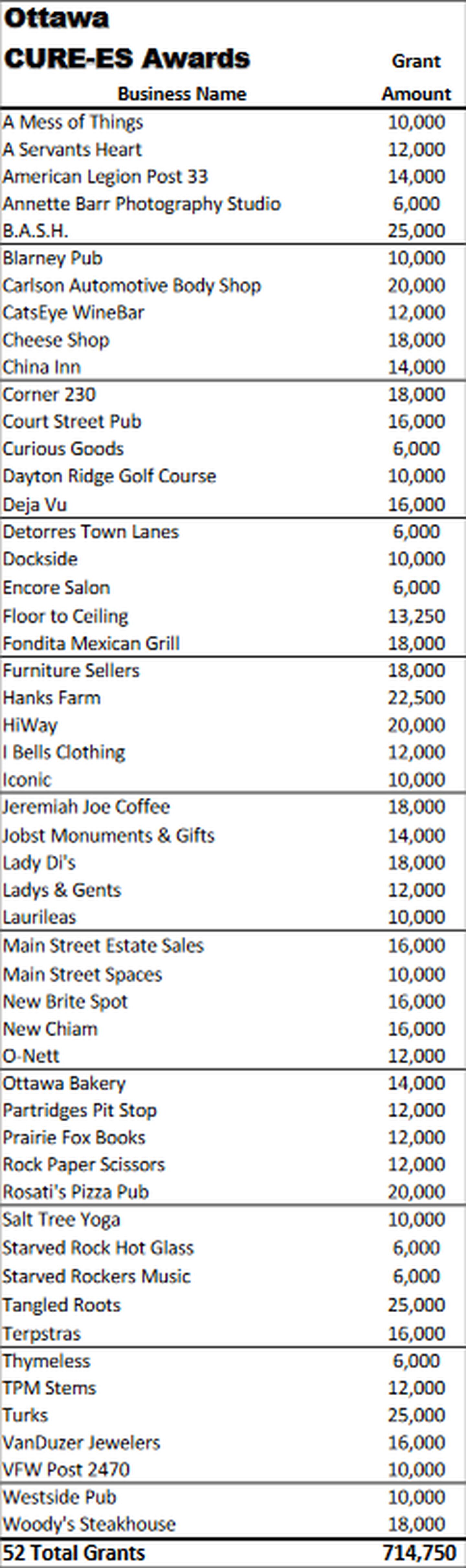 CURE-ES grants procured through the city of Ottawa have been distributed to the tune of $714,750 total among 52 different businesses and organizations.