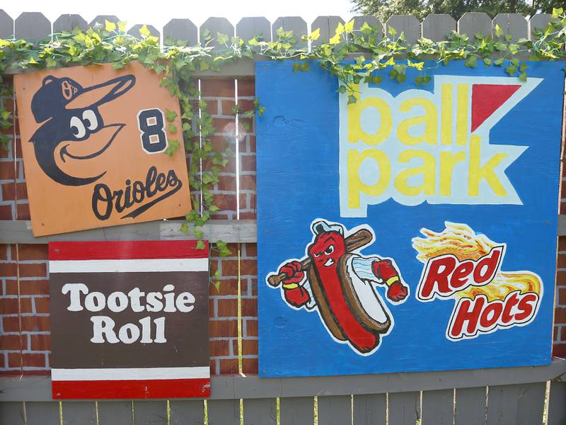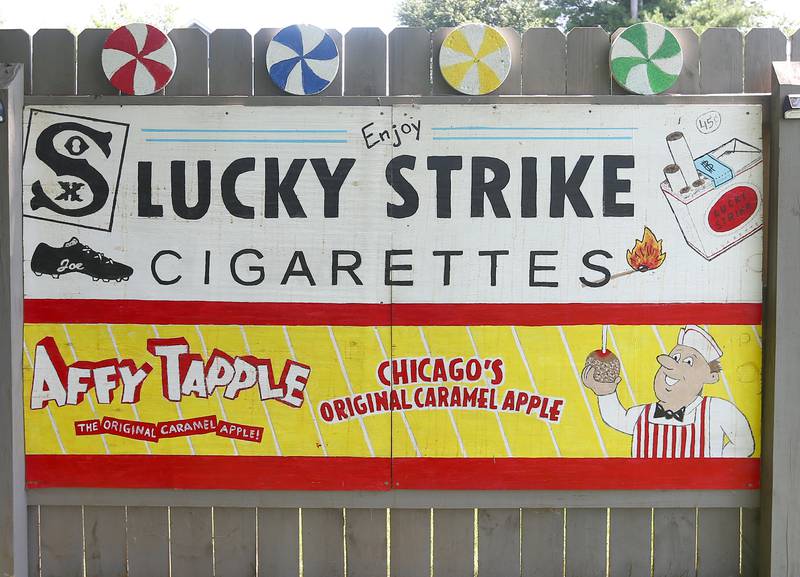 The ads adorning Clifford’s fence also include Cracker Jack, Planters Peanuts, Bazooka Gum, Chicago Dogs, Vienna Beef, A&W Root Beer, Good n’ Plenty, Blackjack Gum, Lucky Strikes, Budweiser, Big League Chew, Spalding baseball gear, Klondike Bar, Louisville Slugger, Lemonheads candy and Crosley Radio. Others are Charleston Chew, Genco Olive Oil, Affy Tapples, Mallo Cup, Geno’s East Pizza, Ball Park Hot Dogs, Cock Robin Drive-In, Gem Razor Blades, Tootsie Roll, Nuts On Clark, Gatorade, Heinz Ketchup, Mountain Dew, Maurice Lenell Pinwheel Cookies and Coca-Cola.