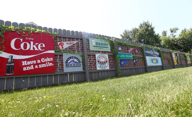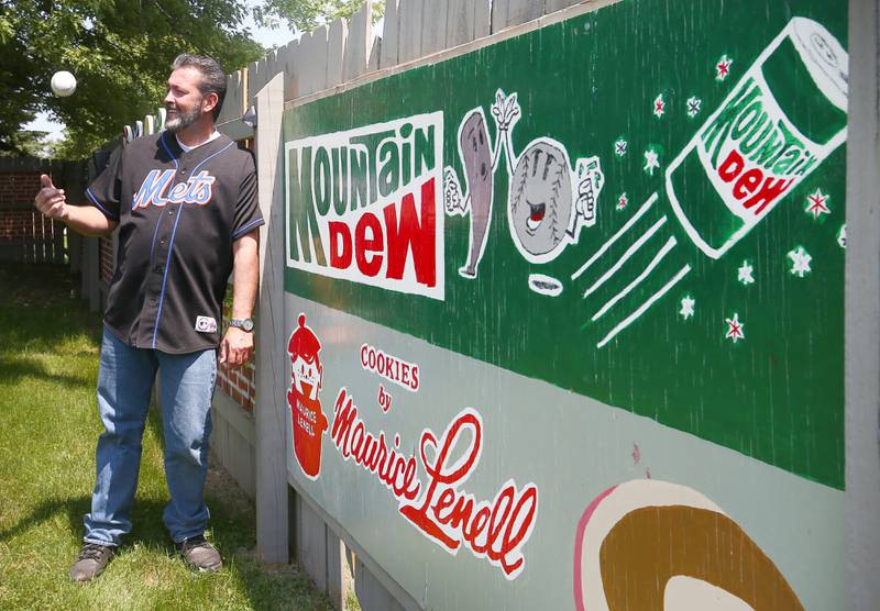 Clifford, a huge Cubs fan, also has painted red bricks all the way around the fence and has fake ivy hanging to give his work that Wrigley Field feel.