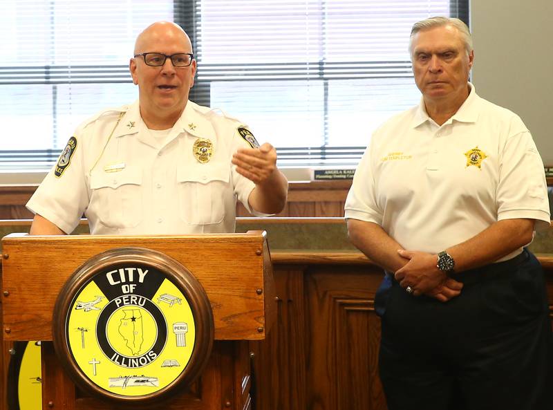 Peru Police Chief Doug Bernabei said at a Monday press conference officers on duty were contacted shortly before 5 a.m. Monday by a resident in the area of Seventh and Plum streets. There, the resident was awakened to screaming and then “had a very clear view” of a struggle on Plum Street just south of Seventh Street near St. Margaret’s-Peru (formerly Illinois Valley Community Hospital).