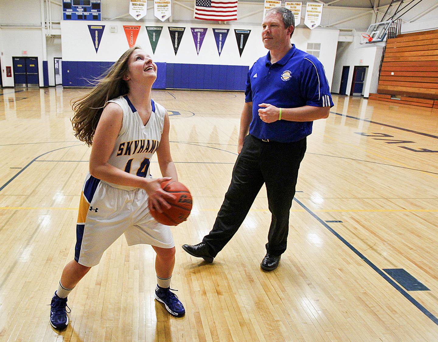 Toussaint: It is hard. I’ve just been blessed that my employers have always been very encouraging with it. At work, they call me “Coach.” Even our owner, Rob Jessup, calls me “Coach.” They like that I do it. And then it’s nice that the [Johnsburg] School District has given me freedom. I’m lucky with our gym situation. I can practice late. We’ll practice 6:30 to 8:30 [p.m.]. It’s a sacrifice to my players. It’s been 32 years of coaching, and my players have always been really flexible. The parents have always been really flexible, and the district and my employers have always been really flexible.