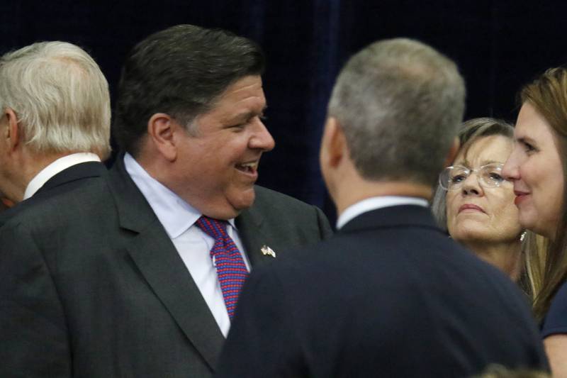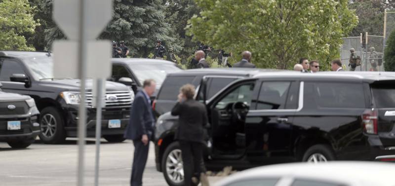 A rally backing former President Donald Trump was taking place in response to Biden’s visit, with flags saying “Illinois for Trump” and touting Republican candidates, such as Gary Rabine, a McHenry County native who is running for governor against Gov. JB Pritzker.