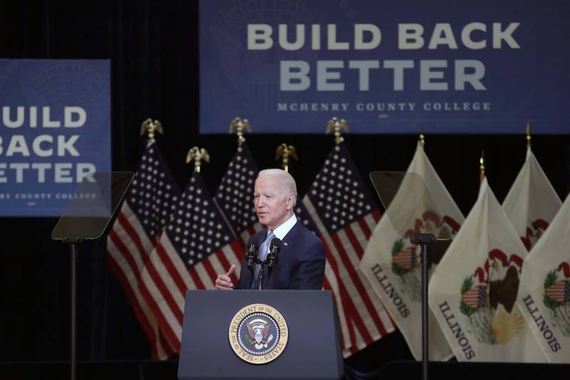 Biden, in a speech at McHenry County College, touted his Build Back Better plan, which he says makes needed improvements to infrastructure, and helps families economically. It includes parts of the American Rescue Plan, the American Jobs Plan and the American Families Plan.