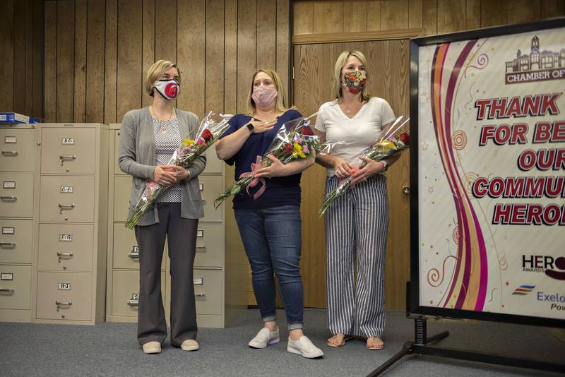 “For our final community hero award, we surprised our school nurses,” said Liz Vos, Chamber of Commerce Executive Director. “They have gone above and beyond during the pandemic. A job that would typically entail stomach aches and scraped knees now also includes contact tracing and daily temperature checks. They’ve continued to do their jobs and be a kind and calming influence on the children and families.”
