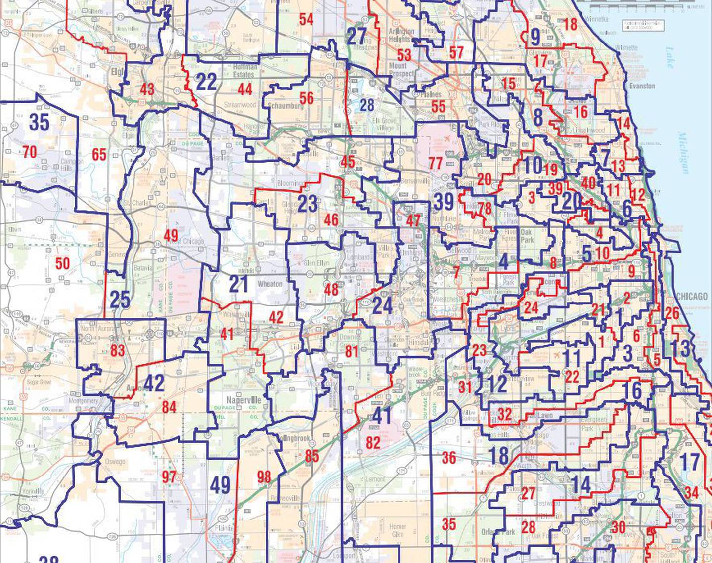 In 2001 and 2011, Democratic House Speaker Mike Madigan controlled the process and drew maps that were laughingly unconstitutional. The Illinois Constitution clearly states that districts shall be compact and equal in population. However, the 2011 map for the Illinois Legislature includes districts that are stringy, arthritic fingers that reach from central city Chicago out into nearby suburbs, to pick up enough population to provide districts for incumbent Democratic members. See the map attached; are those districts compact?