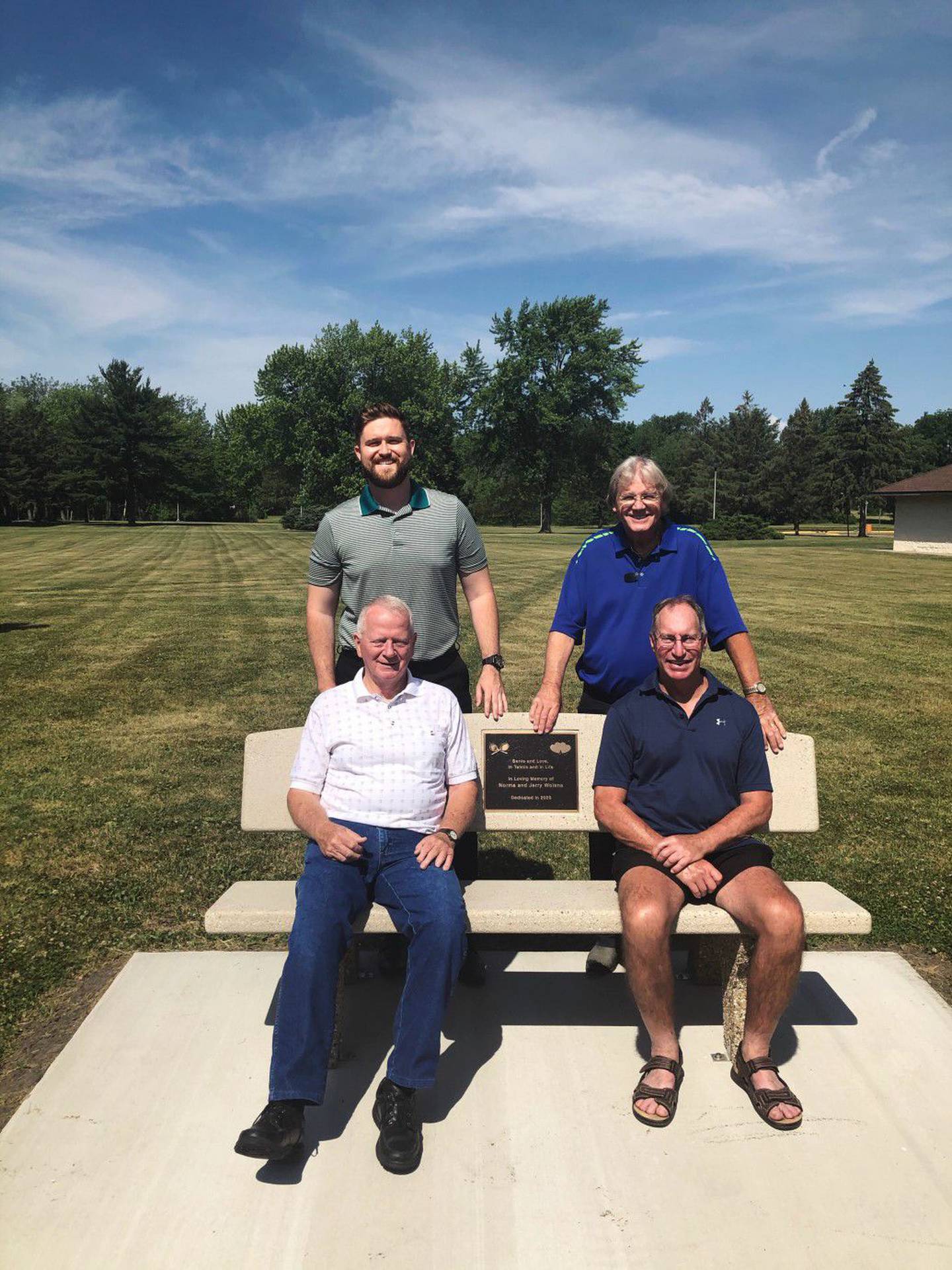 One bench stands in honor of Norma and Jerry Wolens, dedicated by their son, Marc Wolens. The other stands in honor of Dick and Carol Sue Akridge. Both the Wolens and Akridge families have been highly influential in the Sterling-Rock Falls tennis community, specifically for the Coloma Township Park Distric. Both families organized popular tennis tournaments and founded the annual Todd Mcthenia Memorial Tournament, which raises funds for the American Cancer Society.