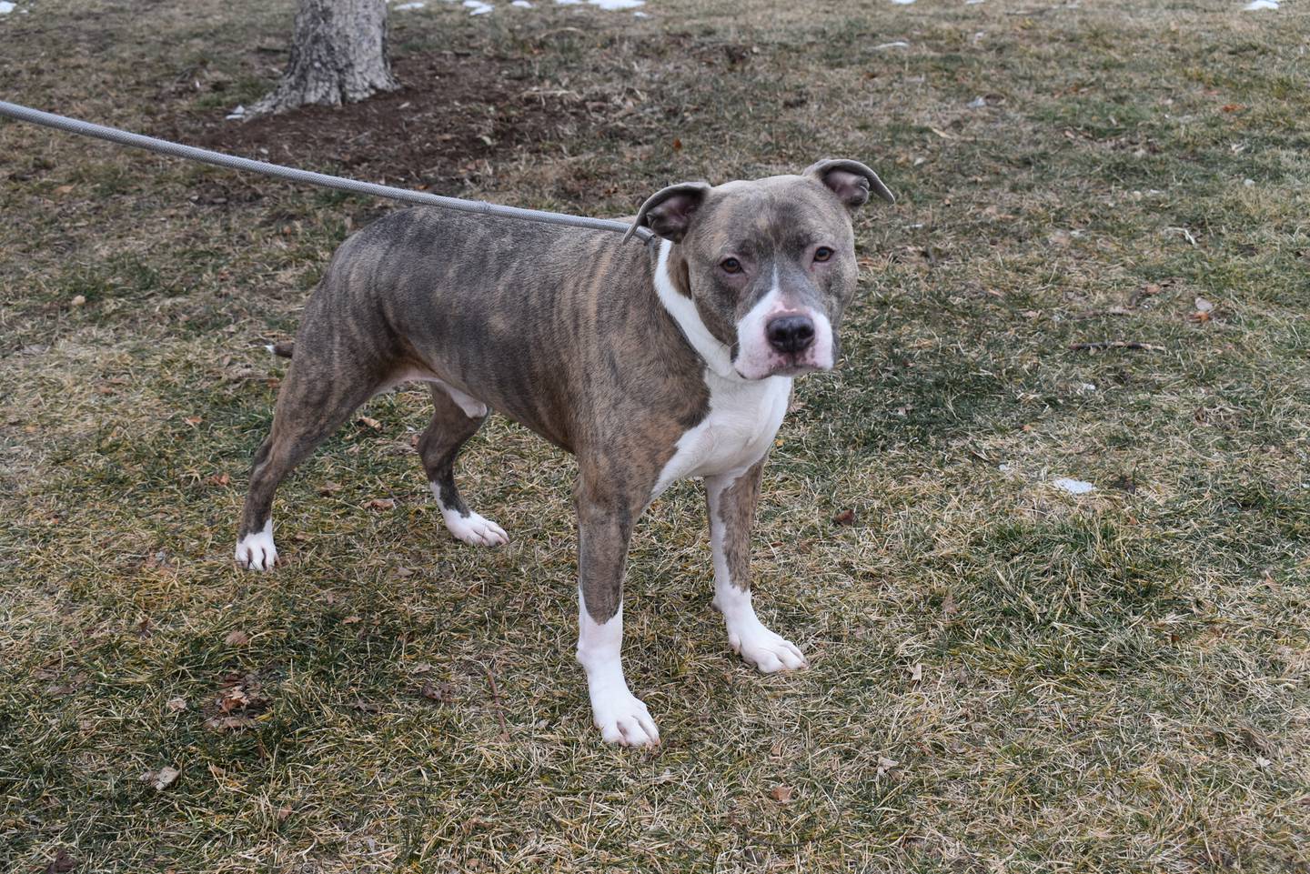 Tyson is a 6 year-old male American bulldog. He’s very social and enjoys long walks and cuddles. Contact the Will County Humane Society at willcountyhumane.com and follow the instructions for the adoption process.