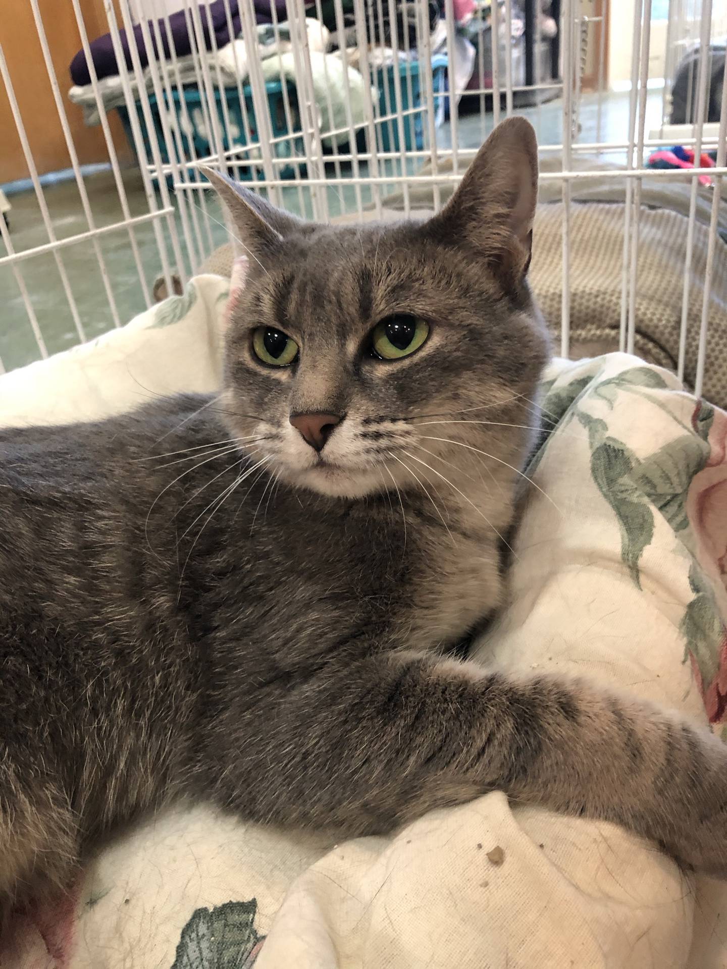 Gray Girl is a 3-year-old tabby. She is quiet and reserved at the rescue, but she enjoys attention and loves scratches down her back. She is not fond of other cats and would need to be the only cat in a home. She would make a wonderful companion cat. To meet Gray Girl, email Delonda at delonda@Nawsus.org or call NAWS at 708-478-5102. Visit nawsus.org.