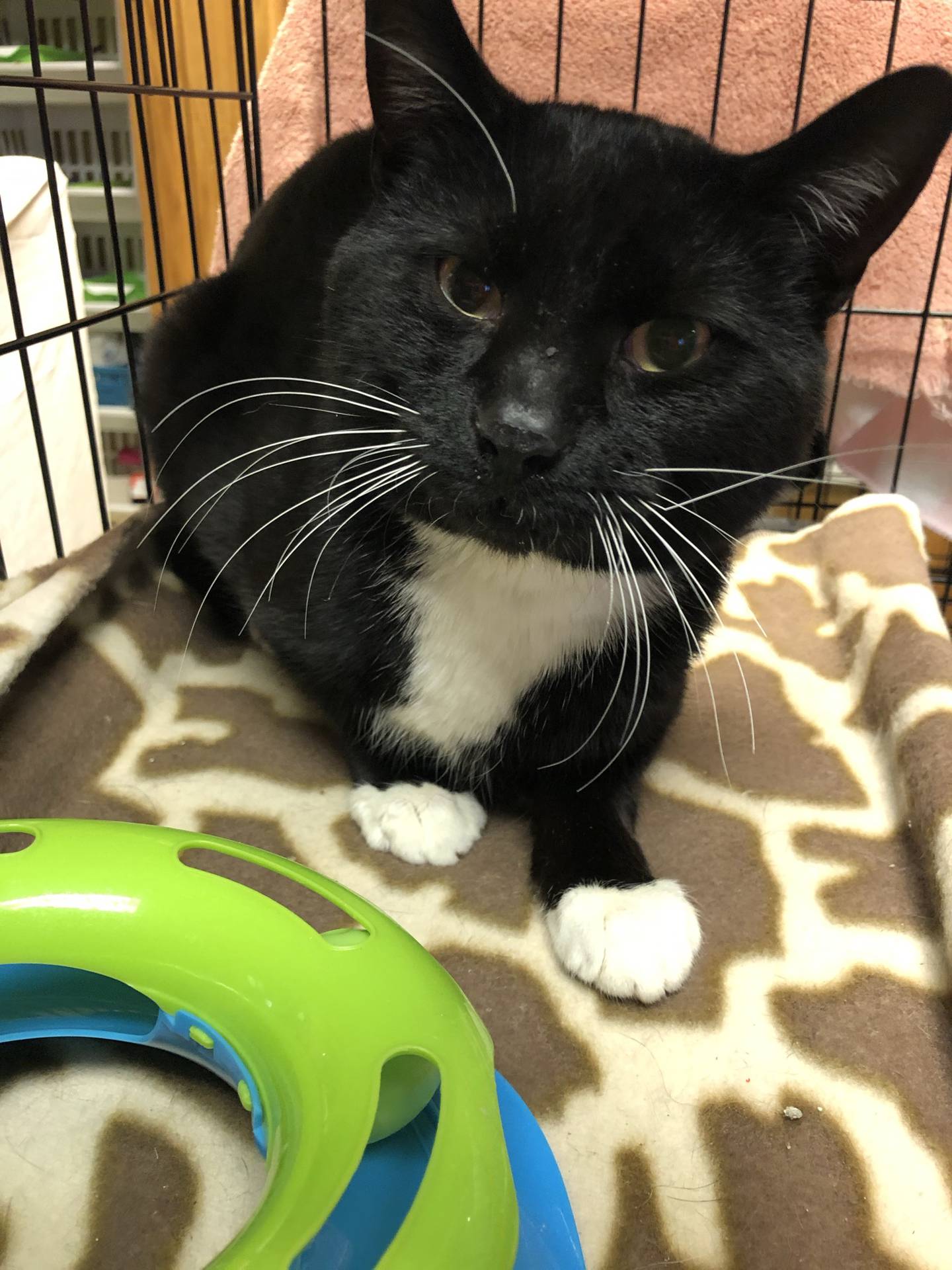 Ricky is an adult domestic shorthair who was returned to the shelter, He is very sweet, loves to be carried around and enjoys playing with his toys. Contact the Will County Humane Society at willcountyhumane.com and follow the instructions for the adoption process.