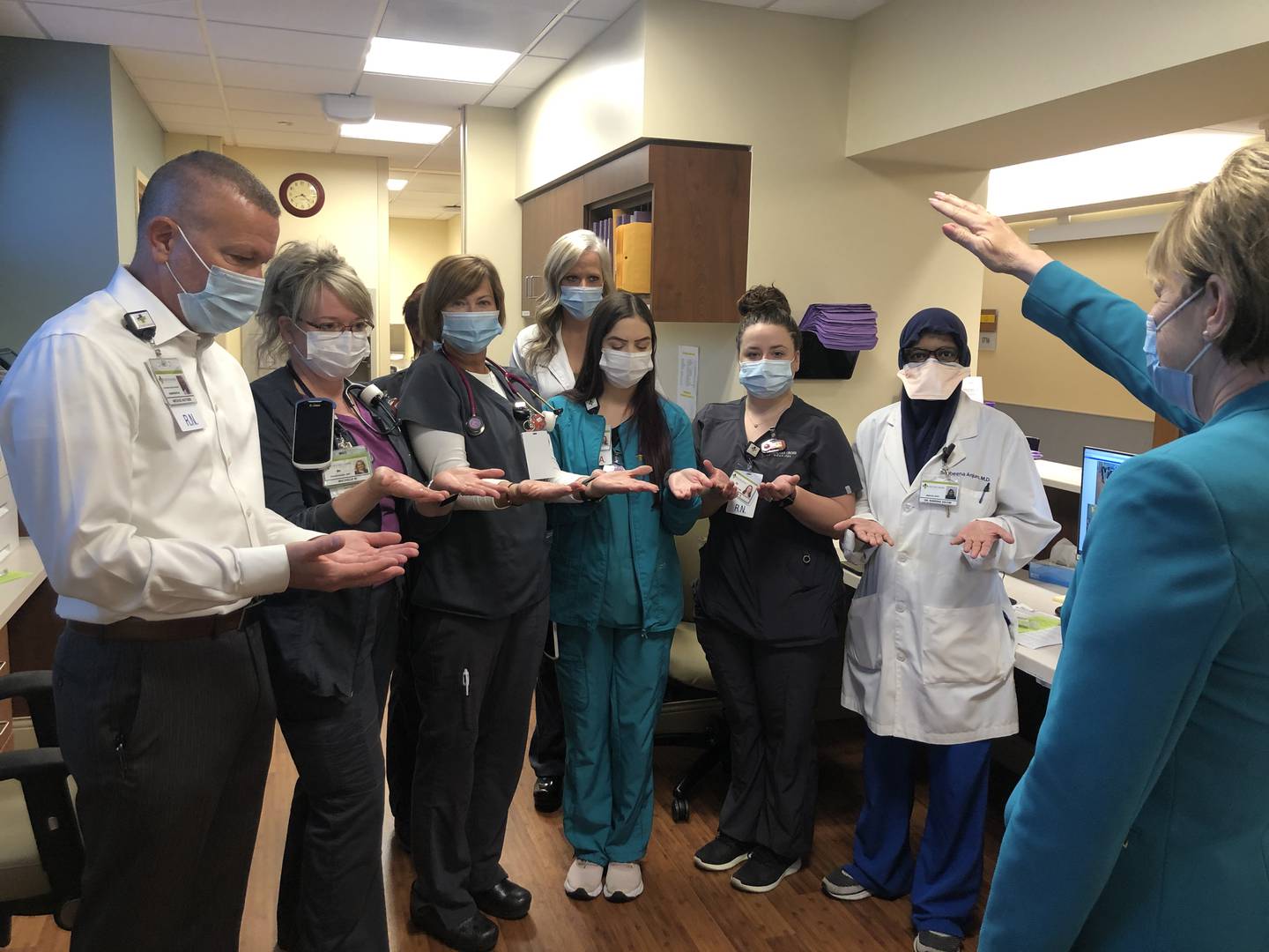 Steadham said in the release that staff tells him they are “hanging in there” when he rounds the hospital.