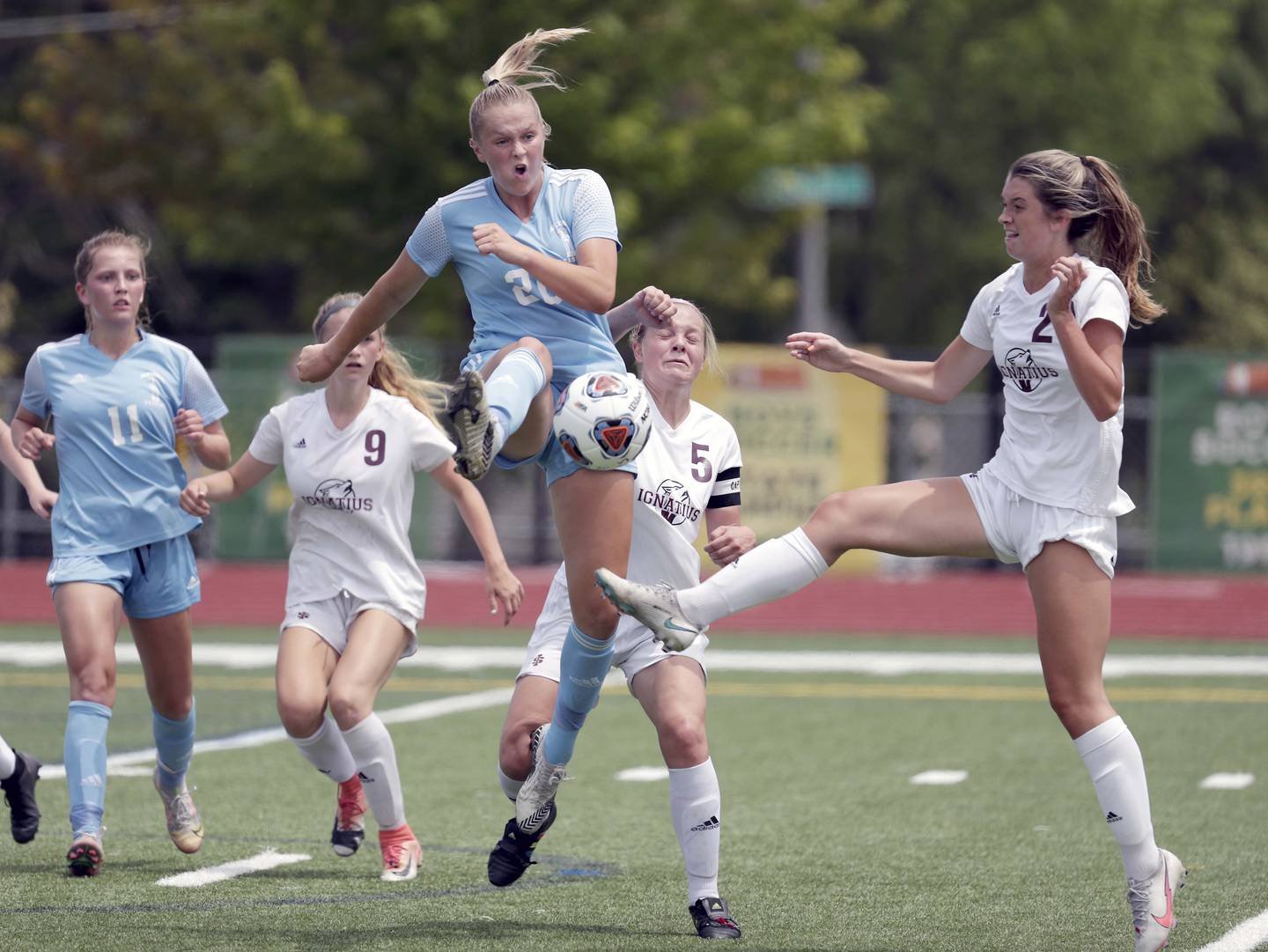PALATINE – The Joliet Catholic Academy girls soccer team continued its dominant postseason run with a resounding 7-1 win in the Class 2A state semifinal match against St. Ignatius of Chicago on Friday.