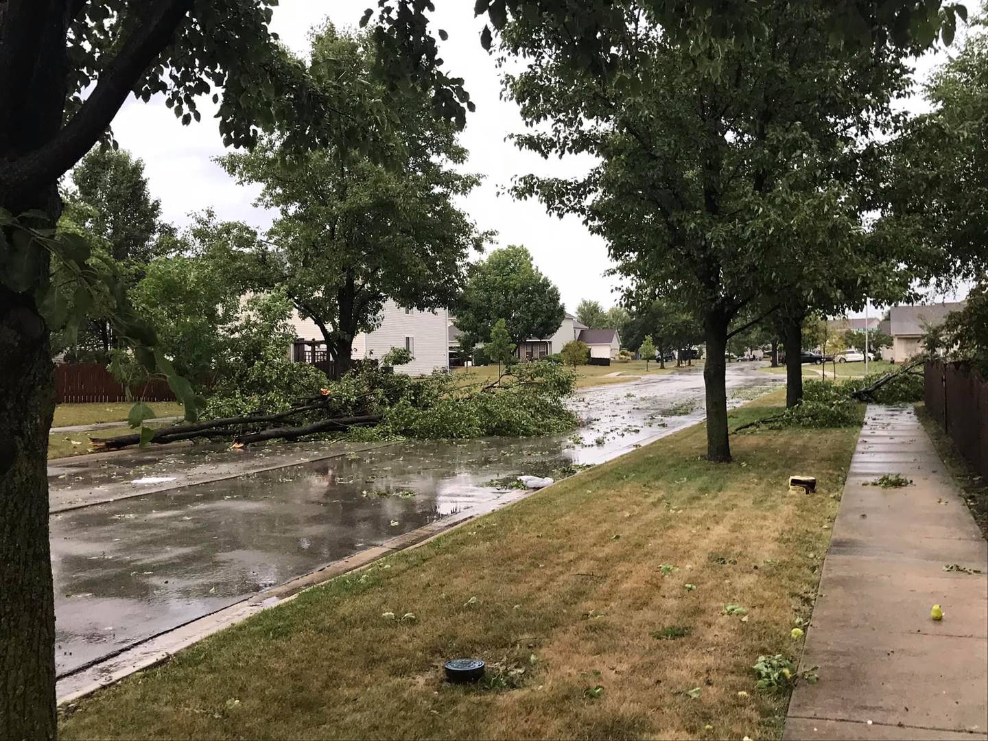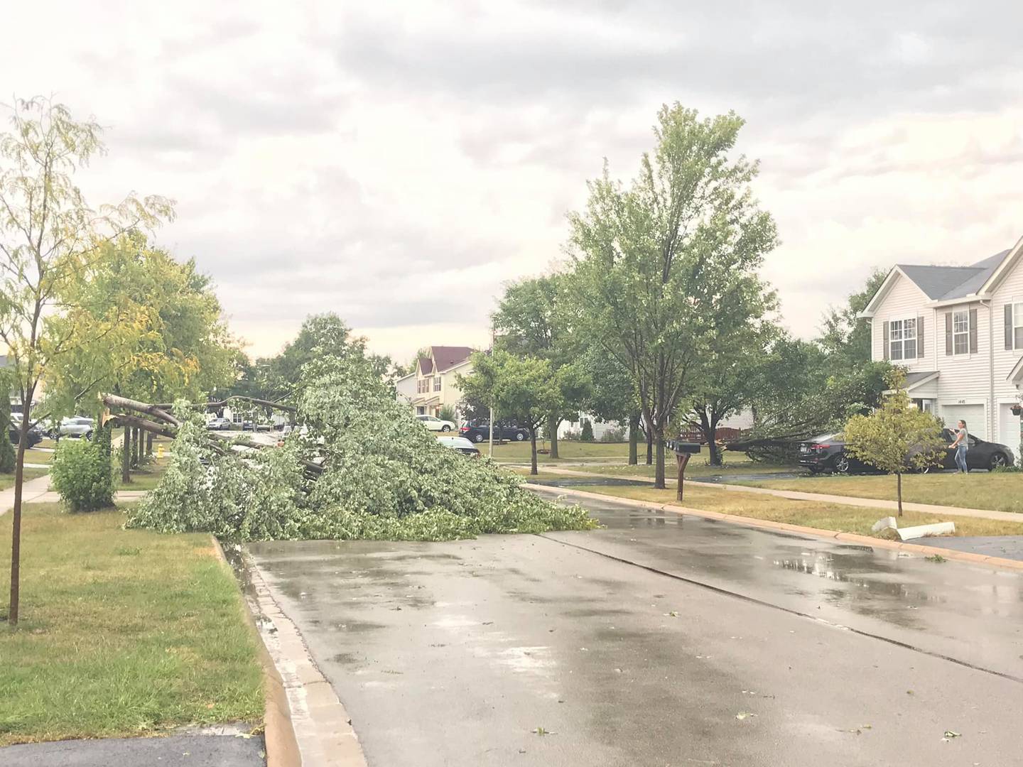 An intense storm that blew through Will and Grundy counties on Tuesday left a concentrated area of downed power lines in Channahon.