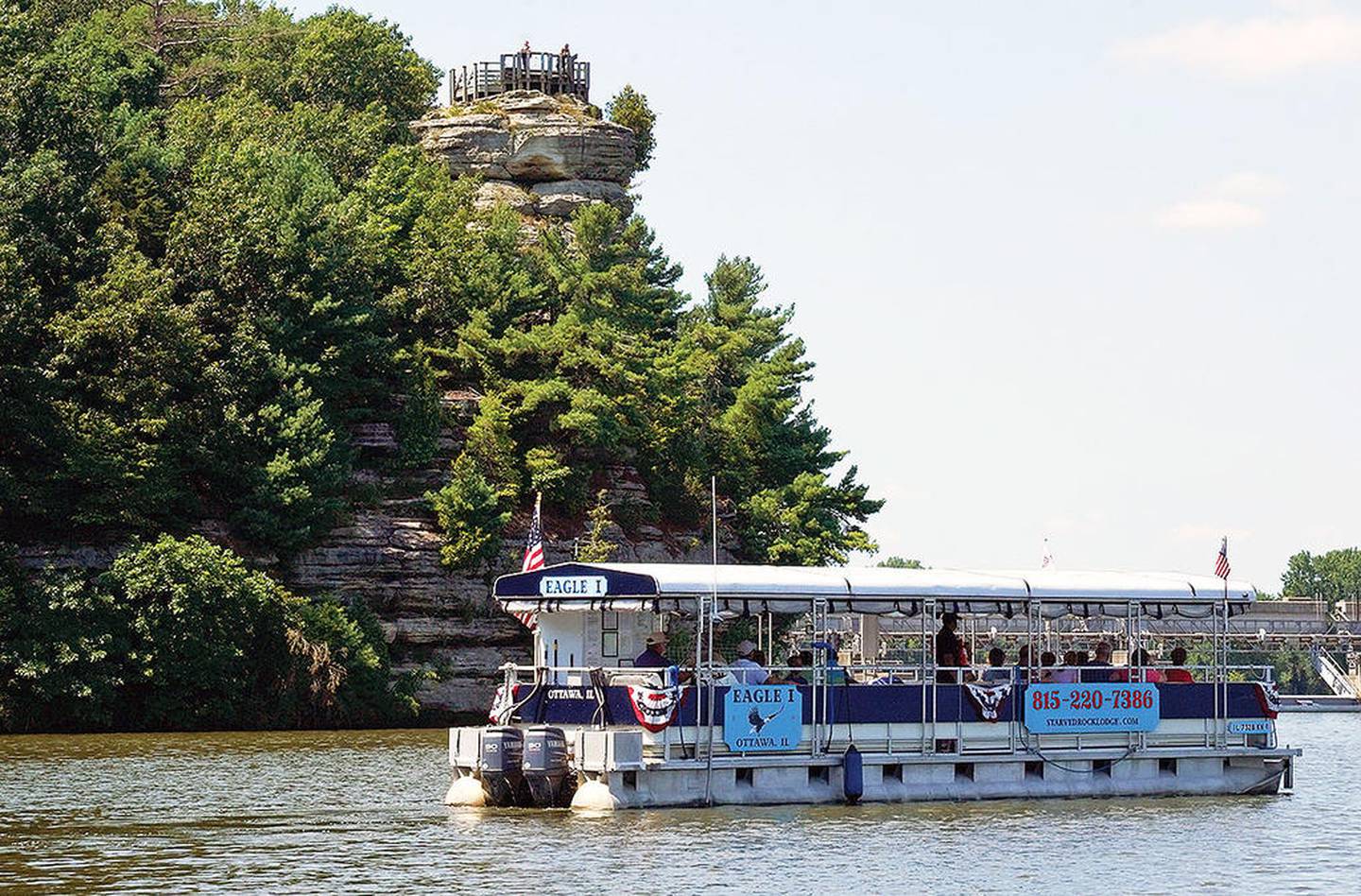 Looking for an opportunity to snap some photos of Starved Rock and the Illinois River’s famed avian visitors? Consider booking a breezy one-hour cruise aboard the Eagle I. Departing from Starved Rock Lodge, guests will take a short trolley ride to Lone Point Shelter, where they’ll board the boat for a beautiful tour of the emerging fall foliage as you learn history, hear legends and possibly even spot some wildlife along the lively Illinois River. Tours cost $35 per person.