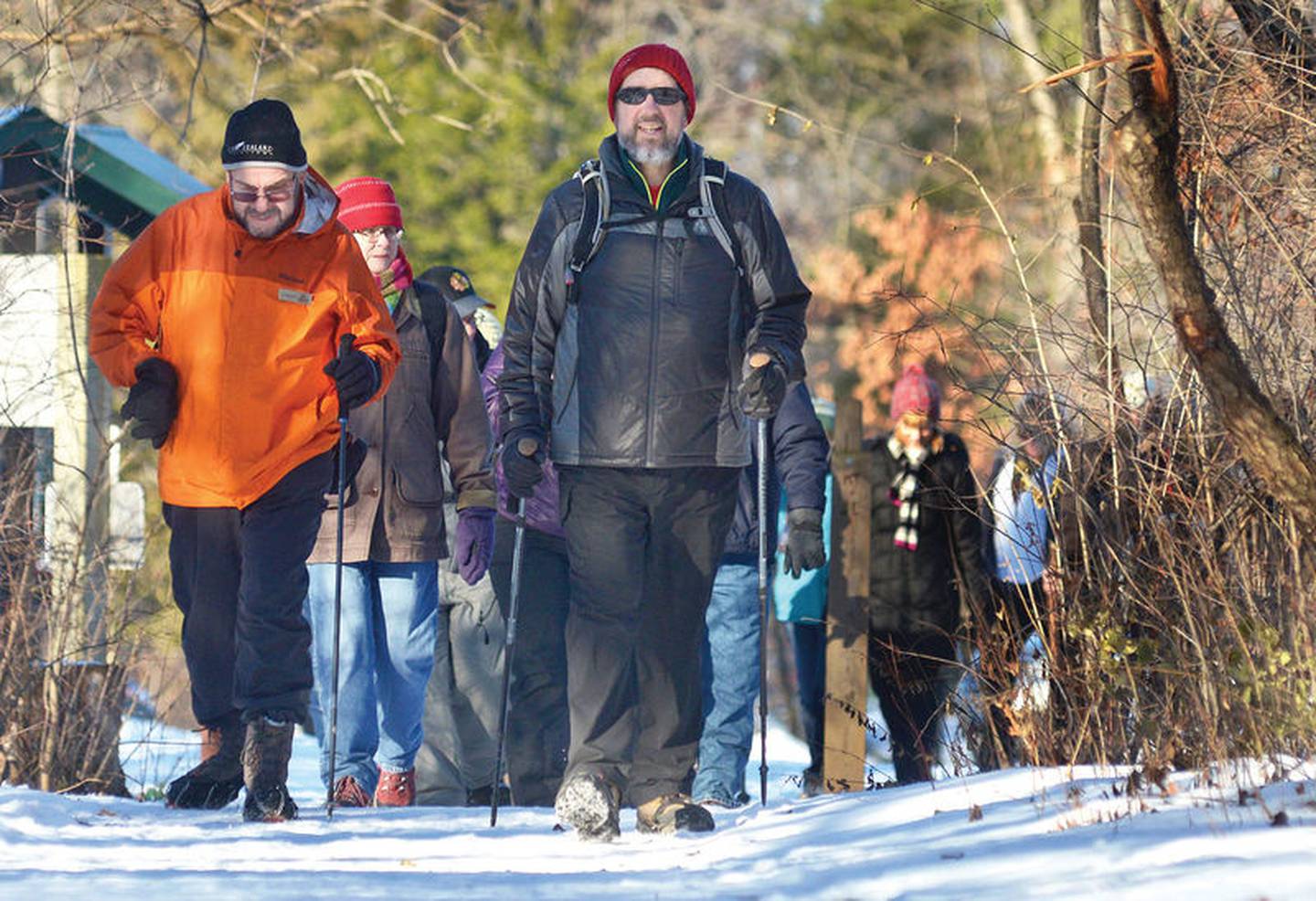 Other featured First Day Hike IDNR parks include: Beall Woods State Park (Wabash County), Beaver Dam State Park (Macoupin County), Castle Rock State Park (Ogle County), Eagle Creek and Wolf Creek state parks (Shelby County), Eldon Hazlet State Recreation Area (Clinton County), Fox Ridge State Park (Coles County), Giant City State Park (Jackson County), Illinois Beach State Park (Lake County), Lincoln Trail State Park (Clark County), Lincoln’s New Salem State Historic Site (Menard County), Pere Marquette State Park (Jersey County), Rock Island Trail State Park (Stark County), Sand Ridge State Forest (Mason County), Sangchris Lake State Park (Sangamon County) and Volo Bog State Natural Area (Lake County).